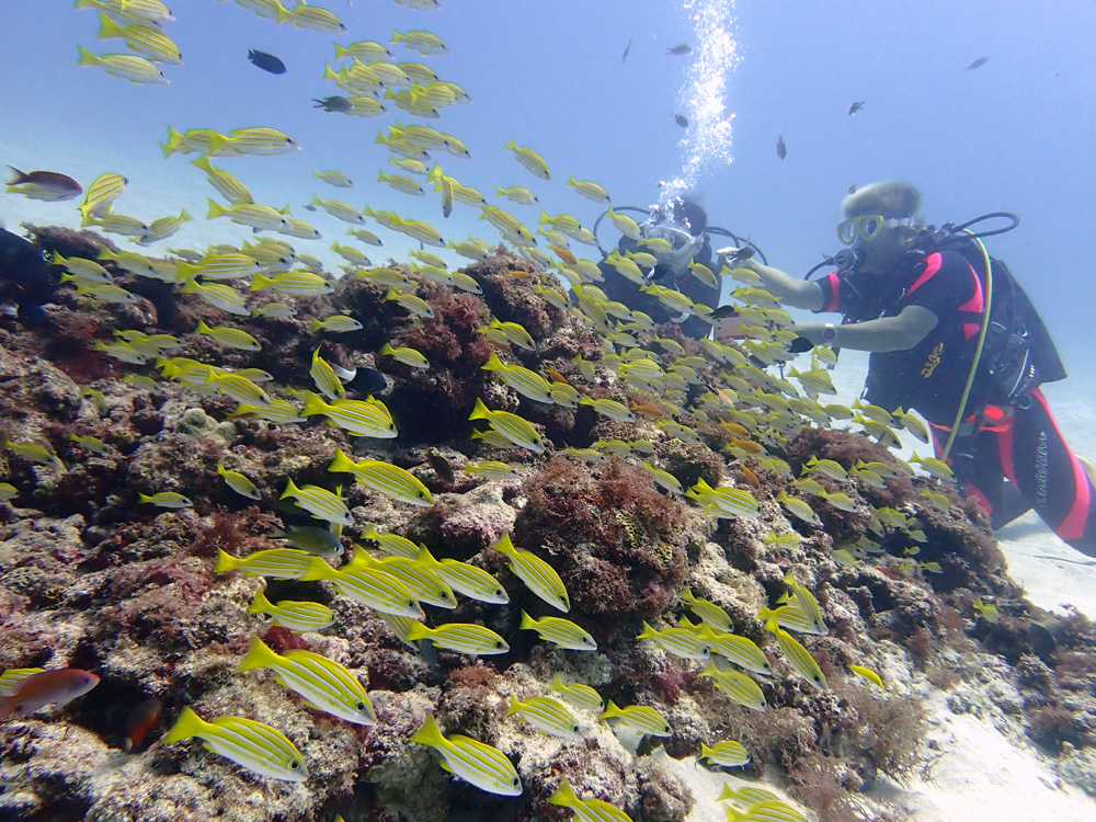 ぶわぁーーーっと正面を横切っていくグルクン(今日はクマササハナムロ)を見たり…