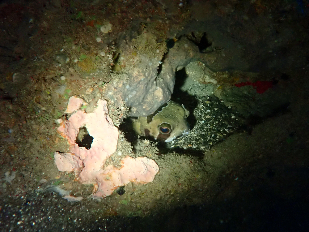 のどのくぼみにはお昼寝中のハリセンボン…