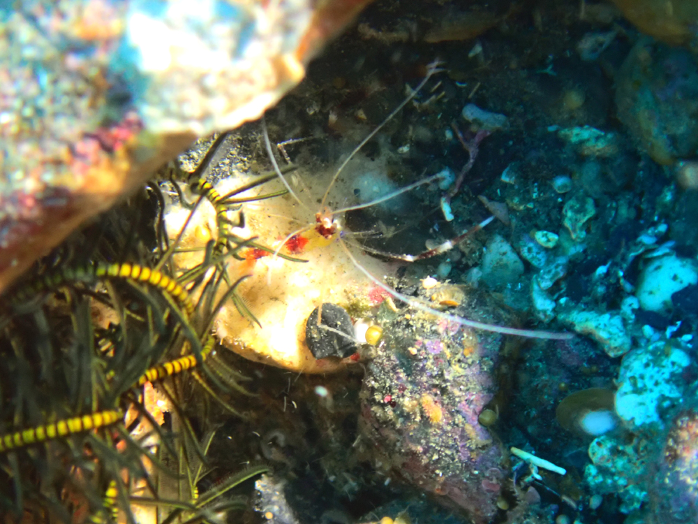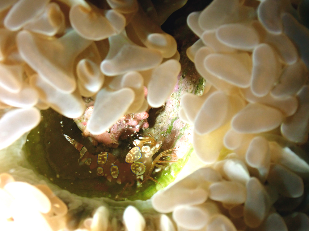 うねっていたのでサンゴの陰に隠れるイソギンチャクモエビ