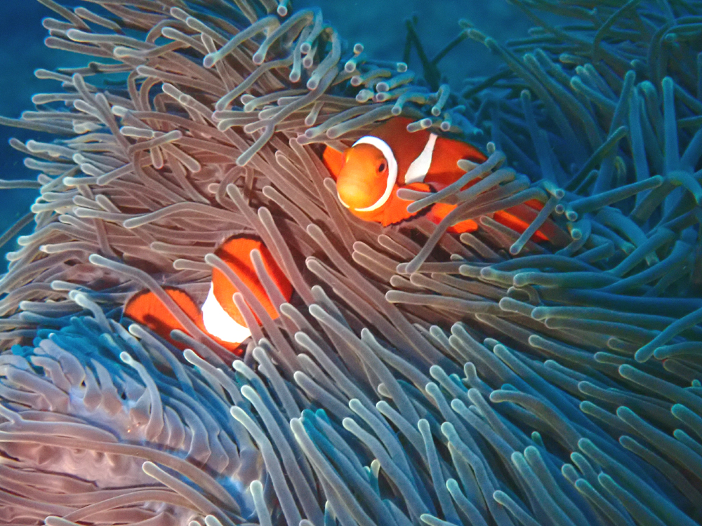 私が知ってる中で1番深い所にいるニモたち。水深20m、暗くないのかな?
