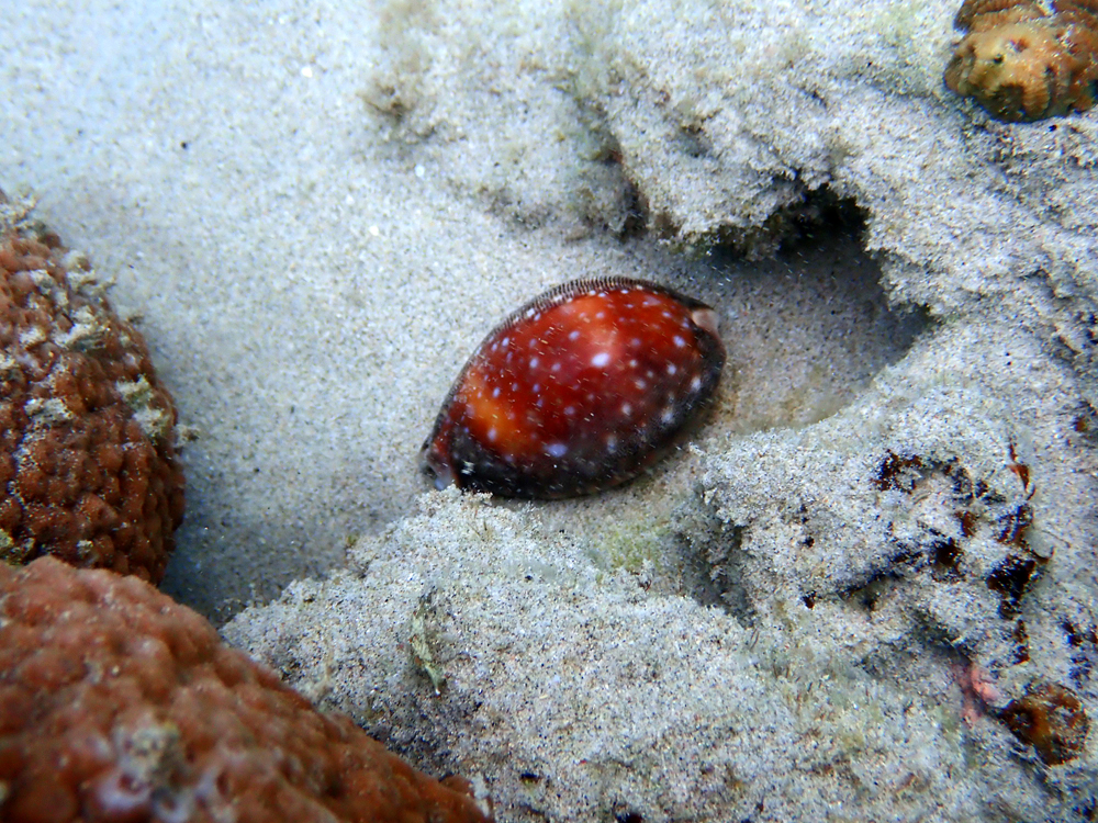 水中では水玉模様が可愛いタカラガイも見つけたようです🔍