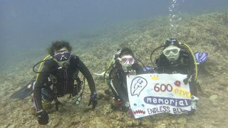 マクロ 600本祝い&久々のビーチファン! 常連様のお祝いでは大きなネムリブカやモヨウフグが、今日のビーチではビックリな大物も出ました!内湾にしかない風景も色々あるのでビーチも意外に楽しいんですよ♪♪ 2025.10.10 マクロ台風大物ダイビング記念ダイブ